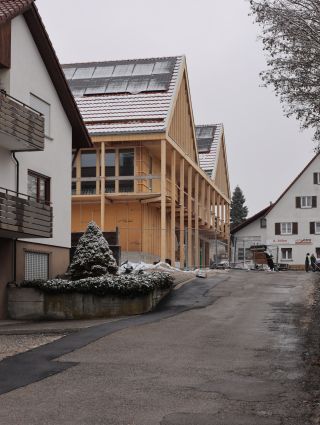 in grabenstetten, einer gemeinde mit rund 1.700 einwohnern auf der schwäbischen alb, entsteht ein mehrgenerationenhaus in holzbauweise. der standort in unmittelbarer nähe zum ortskern gewährleistet eine direkte anbindung an die bestehende dorfstruktur und kurze wege zu öffentlichen einrichtungen.