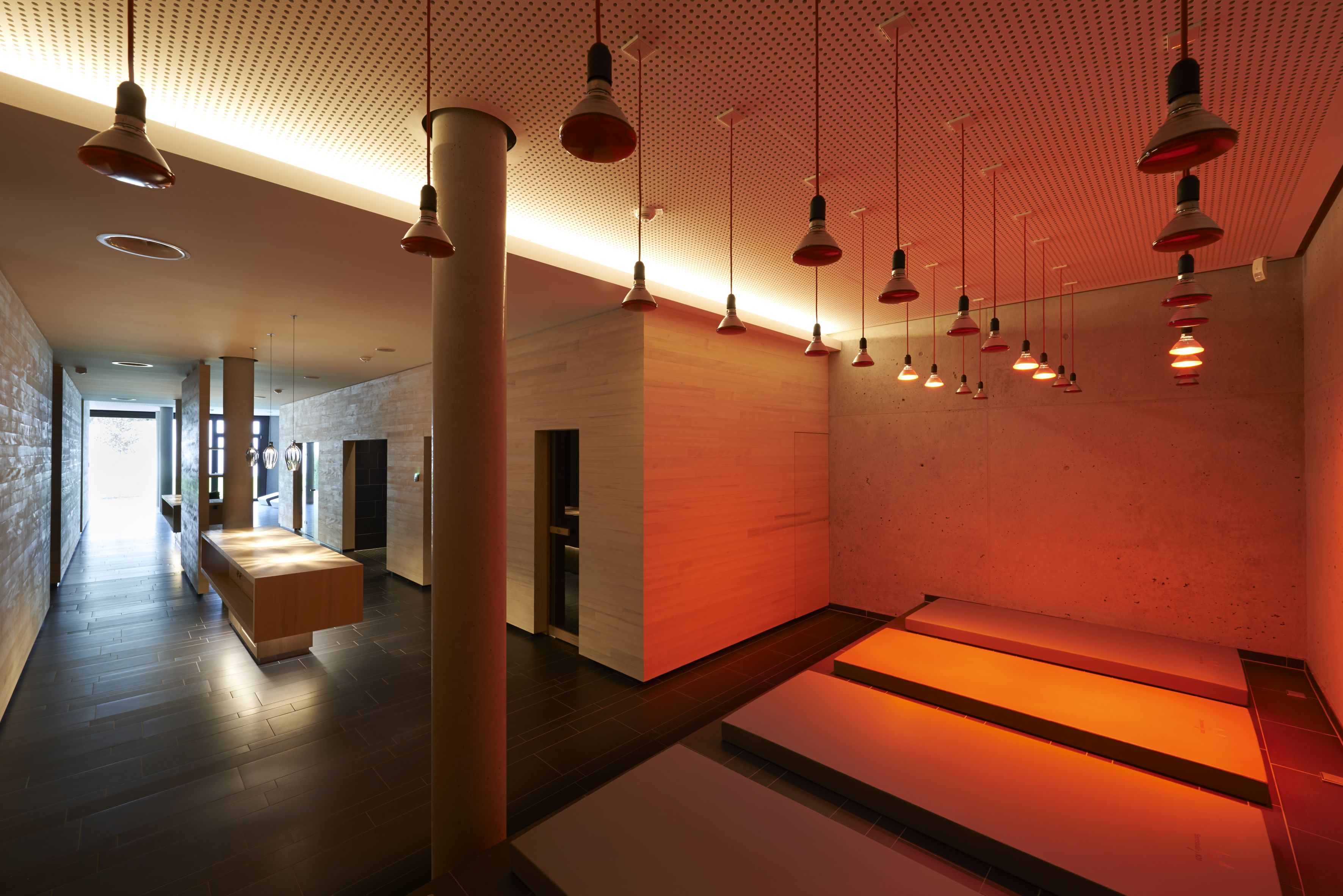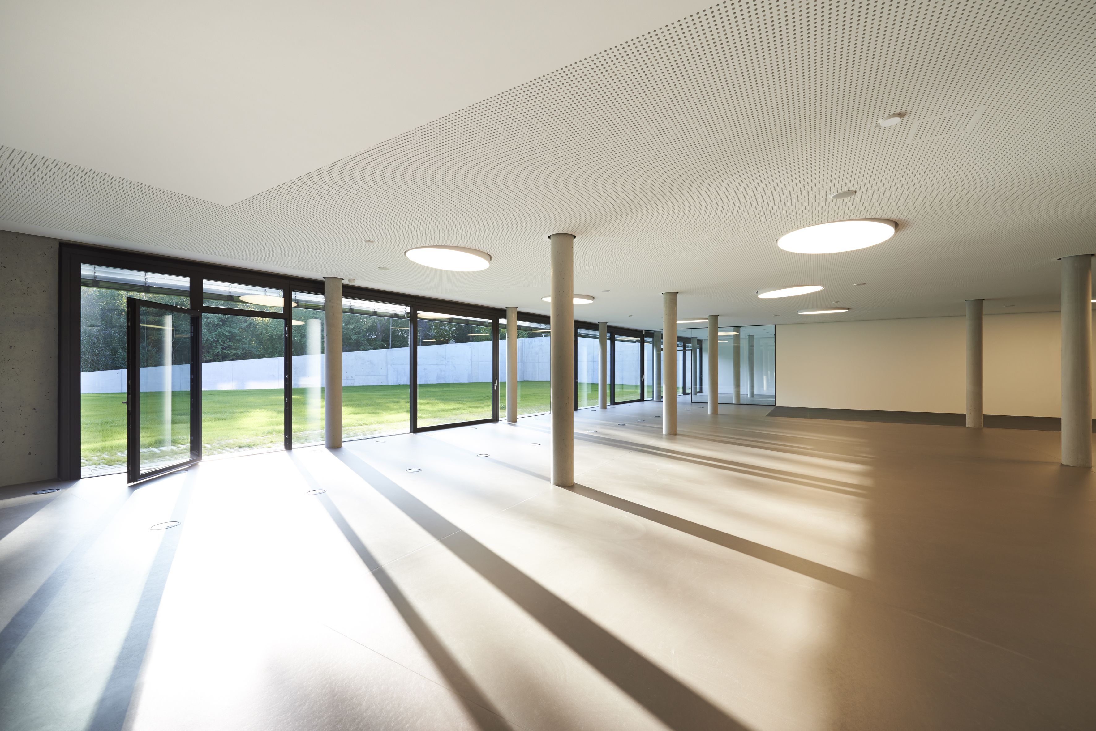 ein massives sockelgeschoss aus beton bildet das negativ des aus dem hang ausgestanzten gartenhofes. darüber entwickeln sich, transparent geschichtet, 2 kleinere obergeschosse. es ergeben sich vielseitig nutzbare terrassen und außenbereiche und qualitätvolle natürliche belichtungen der innenräume.