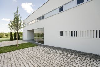 das 2-geschossige gebäude in massivbauweise dient als produktions-, lager- und verwaltungsgebäude. im kontrast zur verputzten fassade aussen, sind die decken- und bodenflächen innen größtenteils in betonoptik. die büroflächen sind mit parkett ausgestattet. die außerordentliche lage am rande des industriegebietes von grafenberg erlaubte eine weitläufige sicht auf wiesen und felder. die mitarbeiter können von dieser aufenthaltsqualität auf der großzügigen dachterrasse profitieren. die begrünte dachfläche schafft einen übergang vom gebäude zur umgebung.