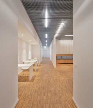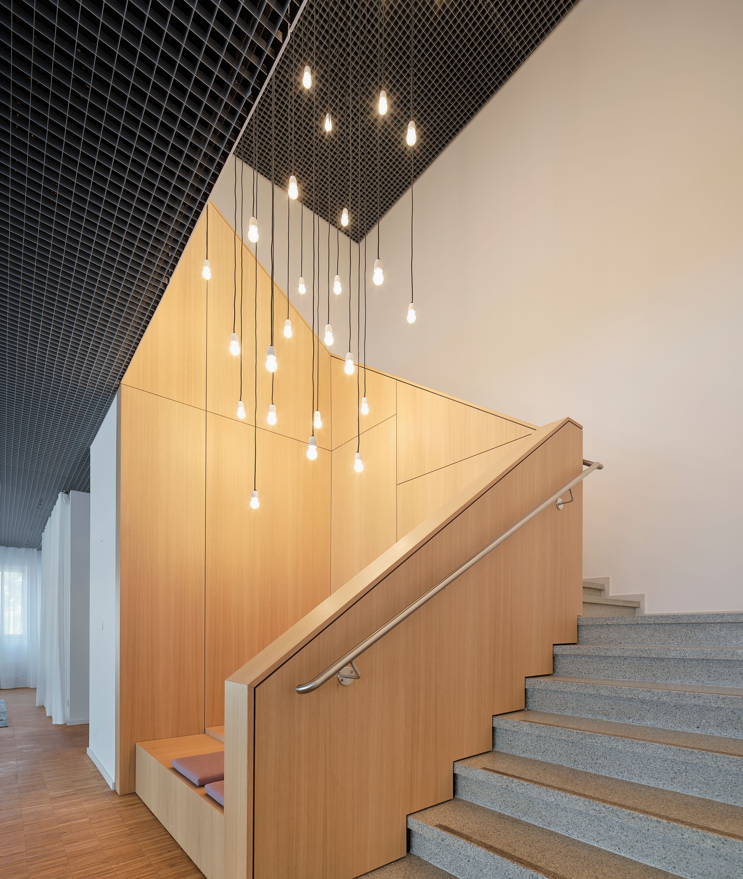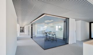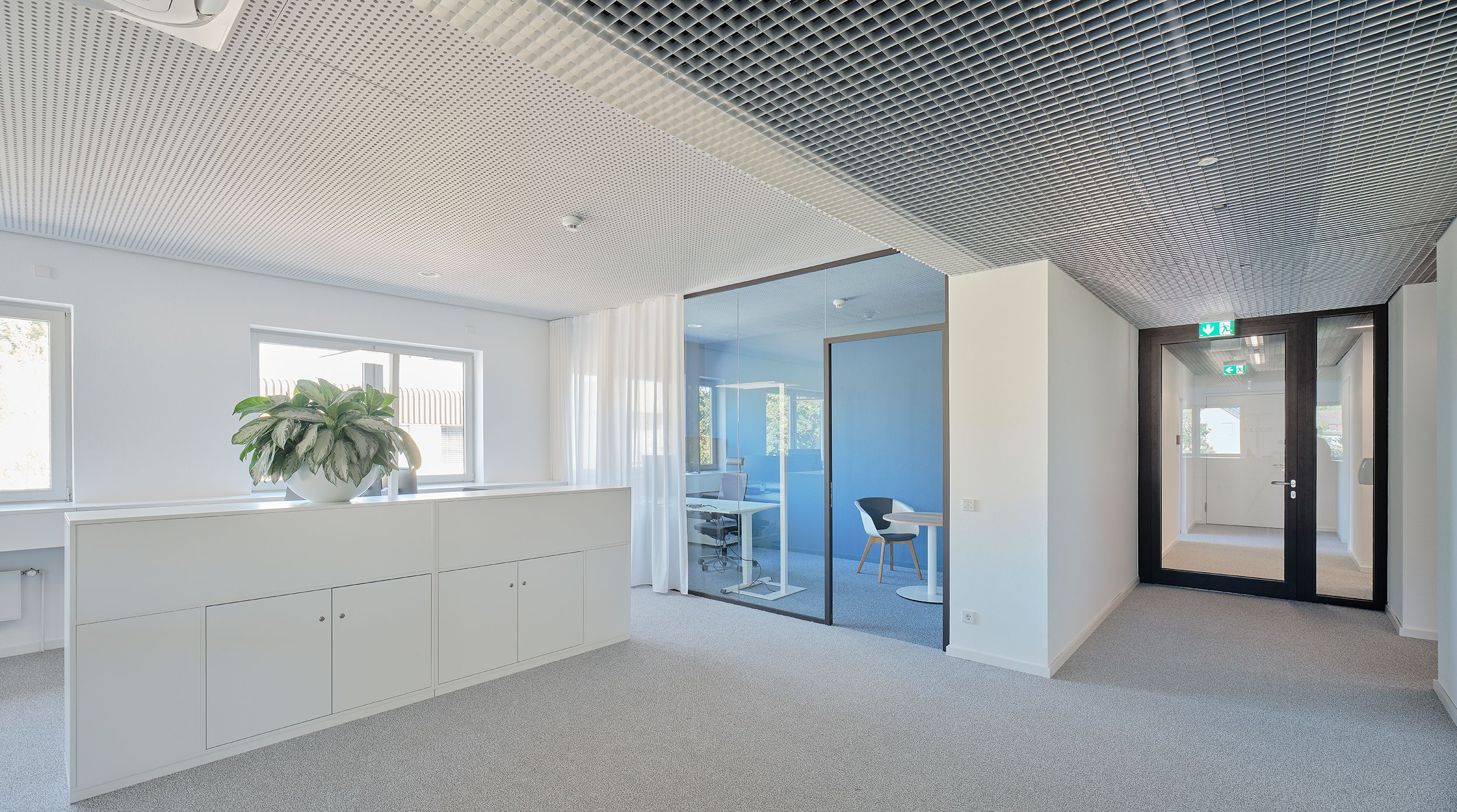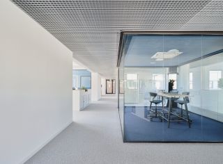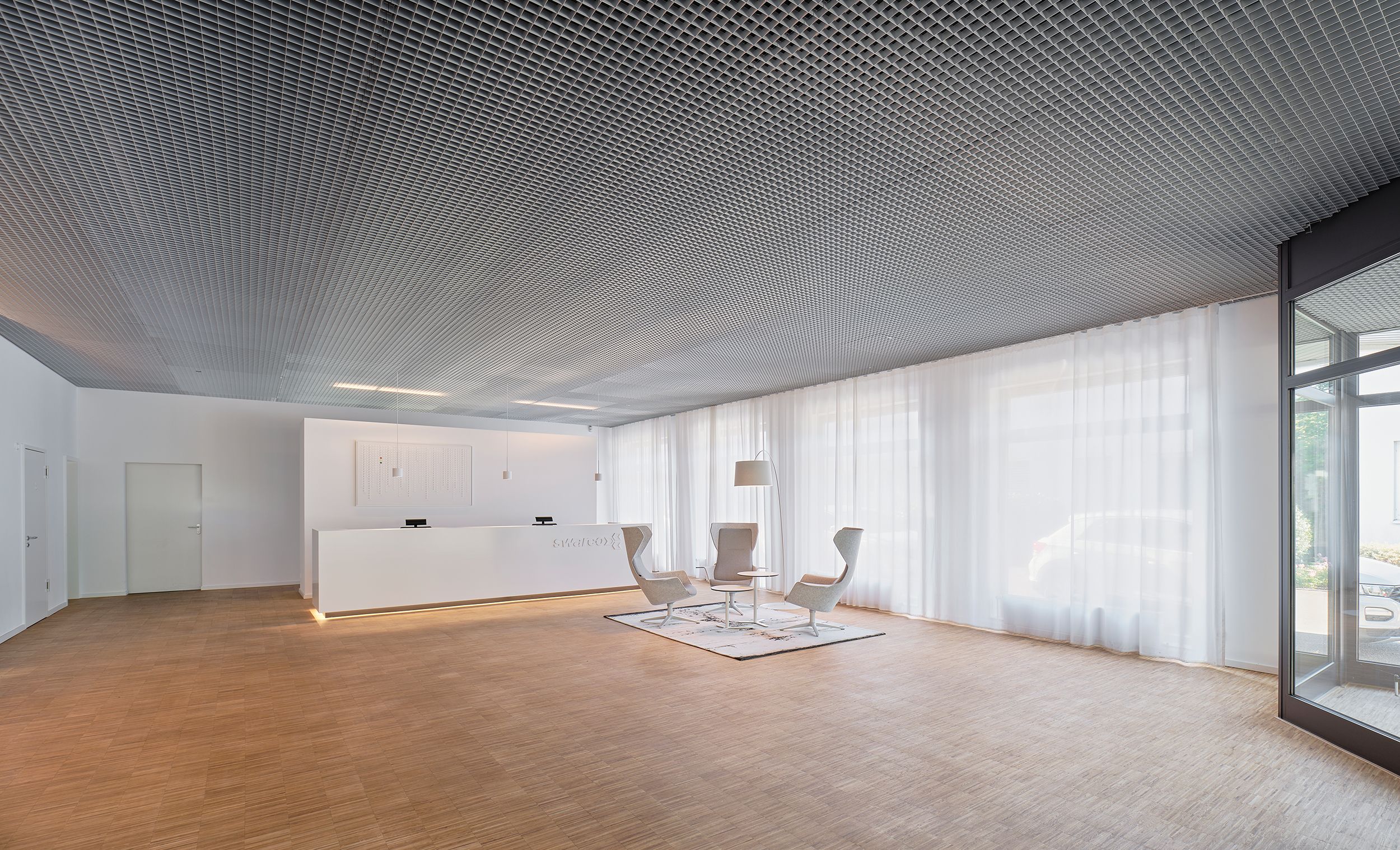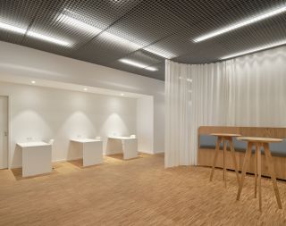 das neu gestaltete foyer wird um einen kundenbereich mit schulungs- und besprechungsräumen ergänzt.