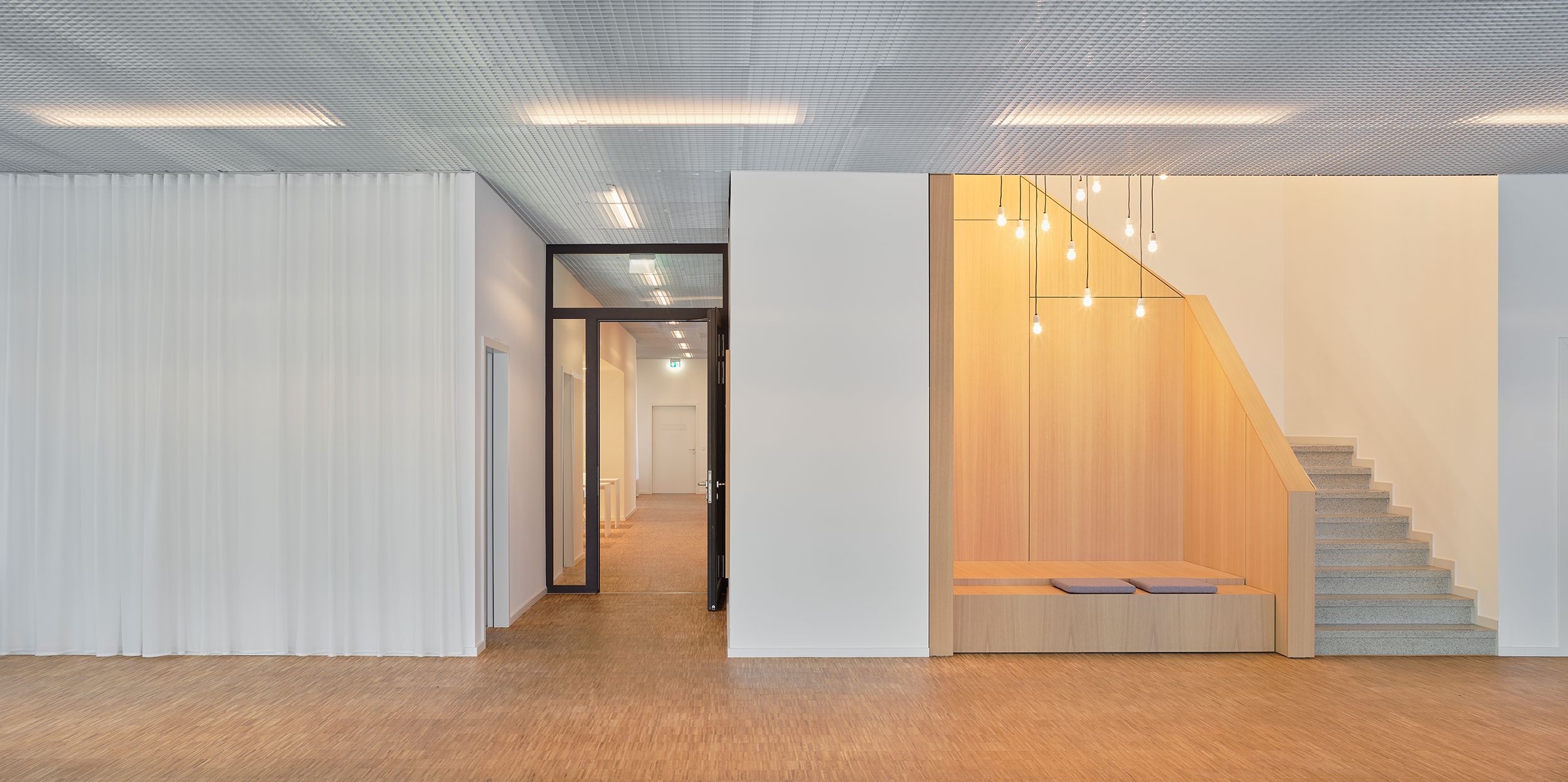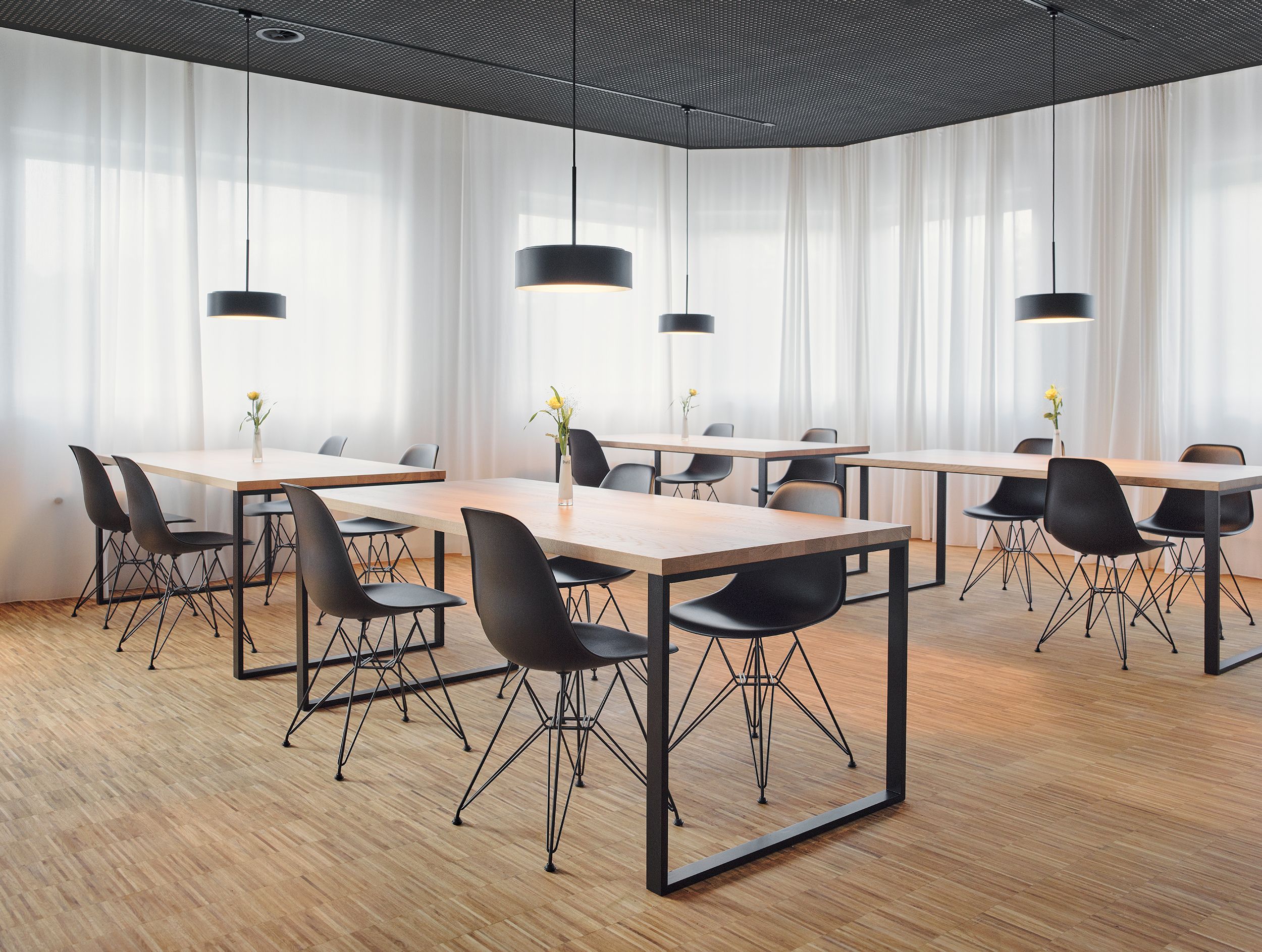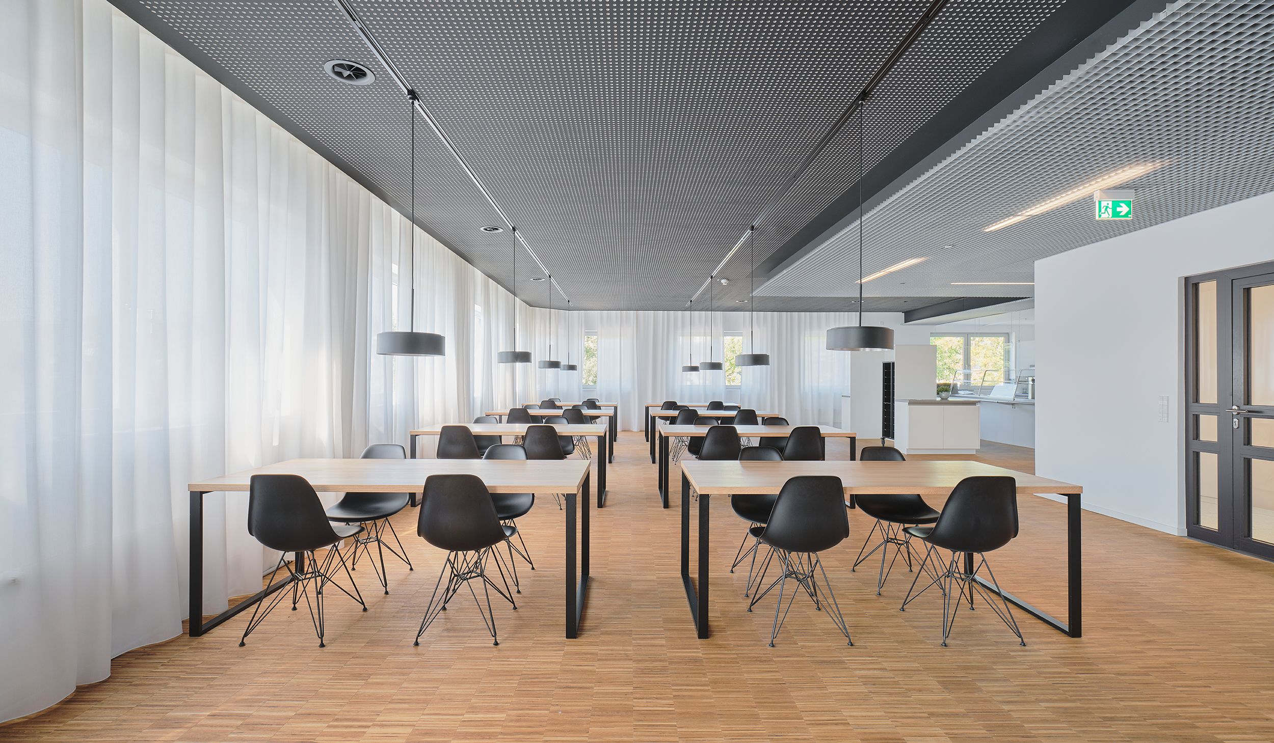 als treffpunkt im gebäude dienen eine neue zentrale kantine sowie eine selbstkocherküche mit theke.